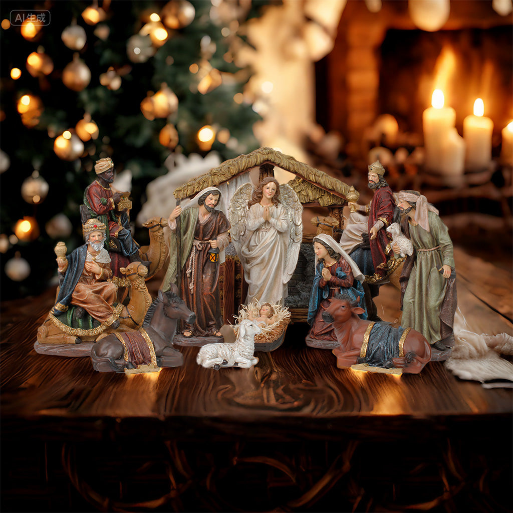 12 Inch Nativity Set with Stable, set 12pcs,Nativity Christmas Sets Gifts, Christmas Resin Scenes Figures Sets Tabletop,Christmas Collectibles Figurines Statue Decor,Handcrafted Resin Nativity Sets with Creche, Traditional Christmas Figurine