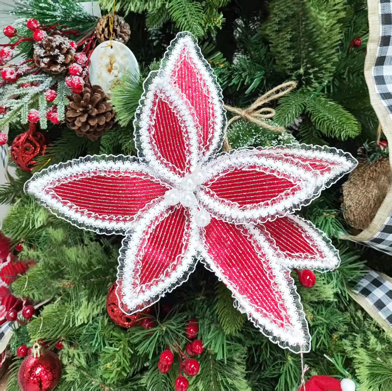 12 Inch Red Christmas Flowers with Lace Edge and Pearl Core,Christmas Glitter Flowers,Faux Flower Christmas Tree Decoration, Glitter Poinsettia Christmas Artificial Flowers,Artificial Flower Velvet Poinsettia Picks,Gold Vein Poinsettia Stem