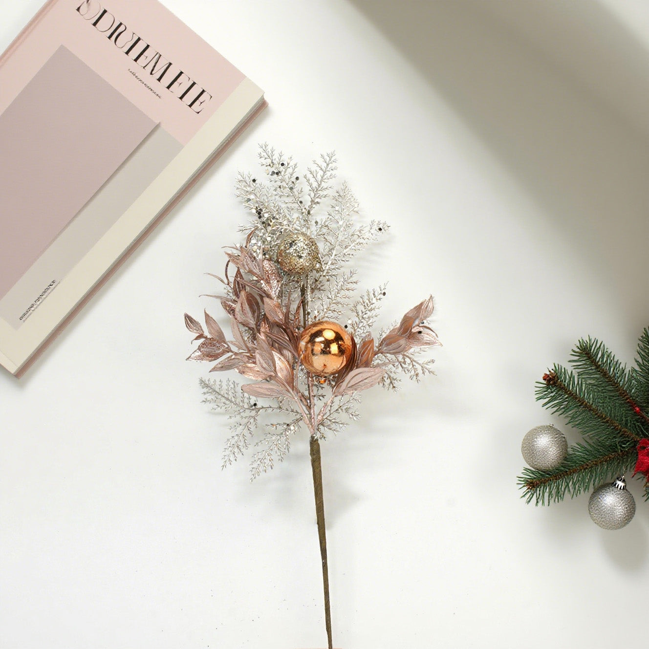 14.5 Inch Champaign Pick,Christmas Holiday Flower Holiday Picks Decors, Wreath Attachments, Tree trimming, Christmas Wreath Accessories, Christmas Tree Home Decoration, Champaign Gold Sprays and Picks