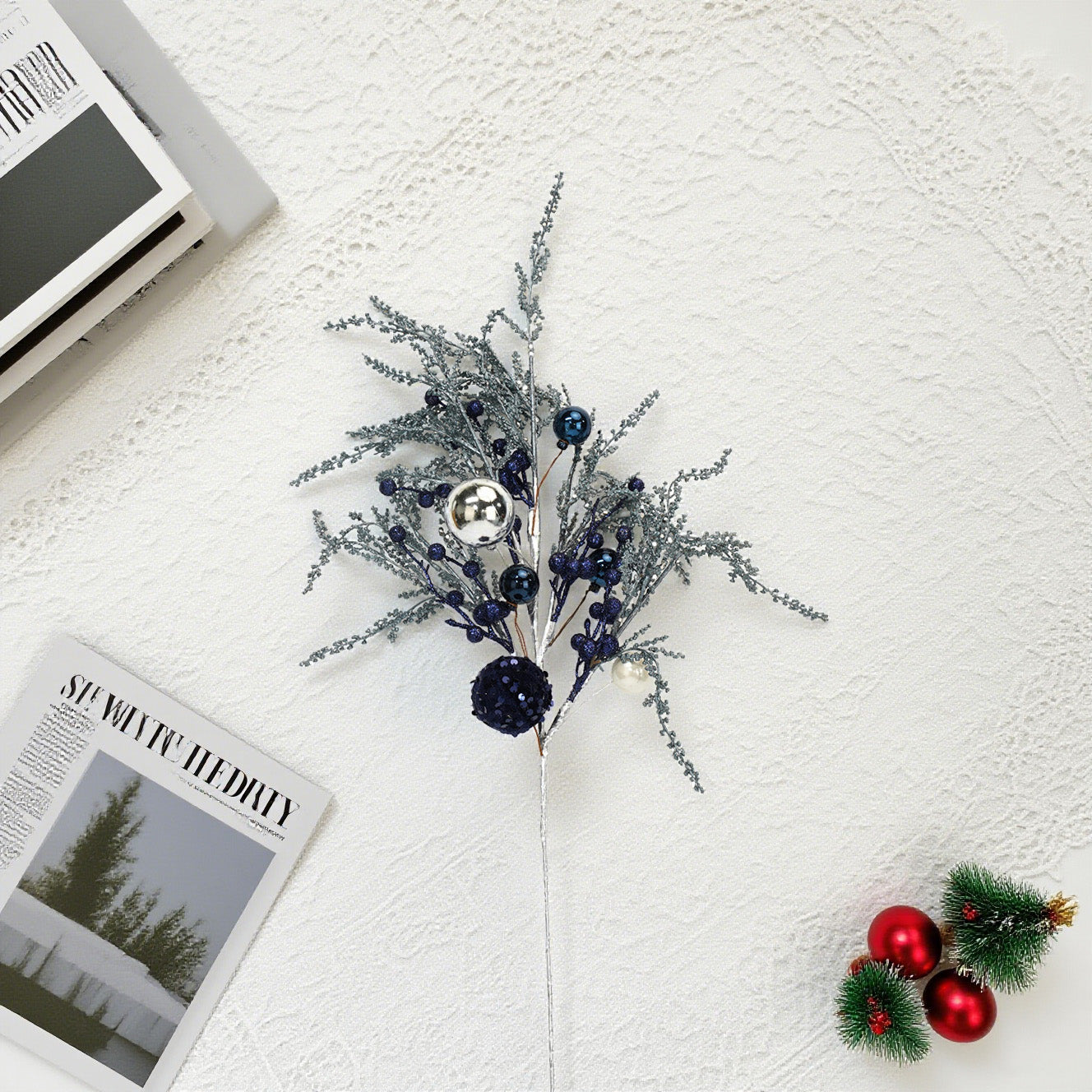 14.5 Inch Dark Blue Pick w/Balls,Glitter Powder Leaf Branch For Flower Arrangement Accessories Christmas Party Home Wedding Garden Decoration, Pink Blue Purple Glitter Sequin Cedar Spray, Artificial Christmas Spray