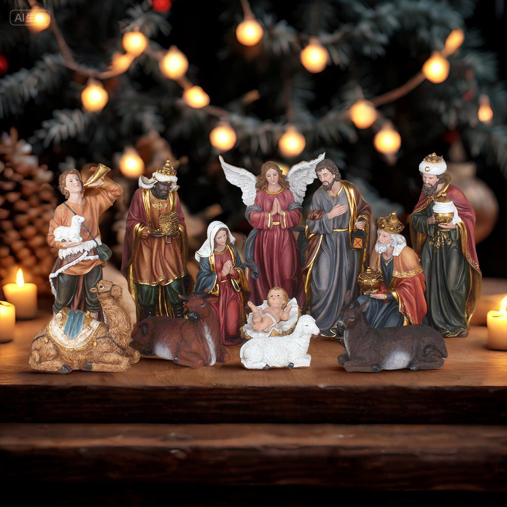 16 Inch Nativity Set, set 12pcs,Nativity Christmas Sets Gifts, Christmas Resin Scenes Figures Sets Tabletop,Christmas Collectibles Figurines Statue Decor,Handcrafted Resin Nativity Sets, Traditional Christmas Figurine