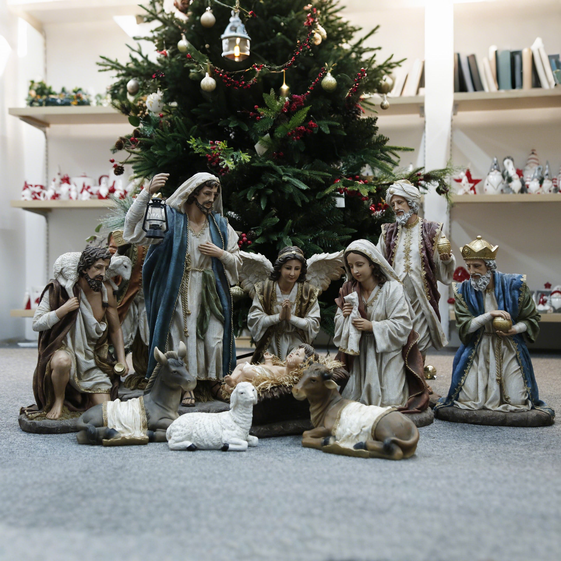 36 Inch Large Nativity Set, set 11pcs,Large Nativity Christmas Sets in church, Outdoor Christmas Resin Scenes Full Color, Fiberglass Christmas Collectibles Figurines Statue ,Handcrafted Resin Nativity Sets in big size