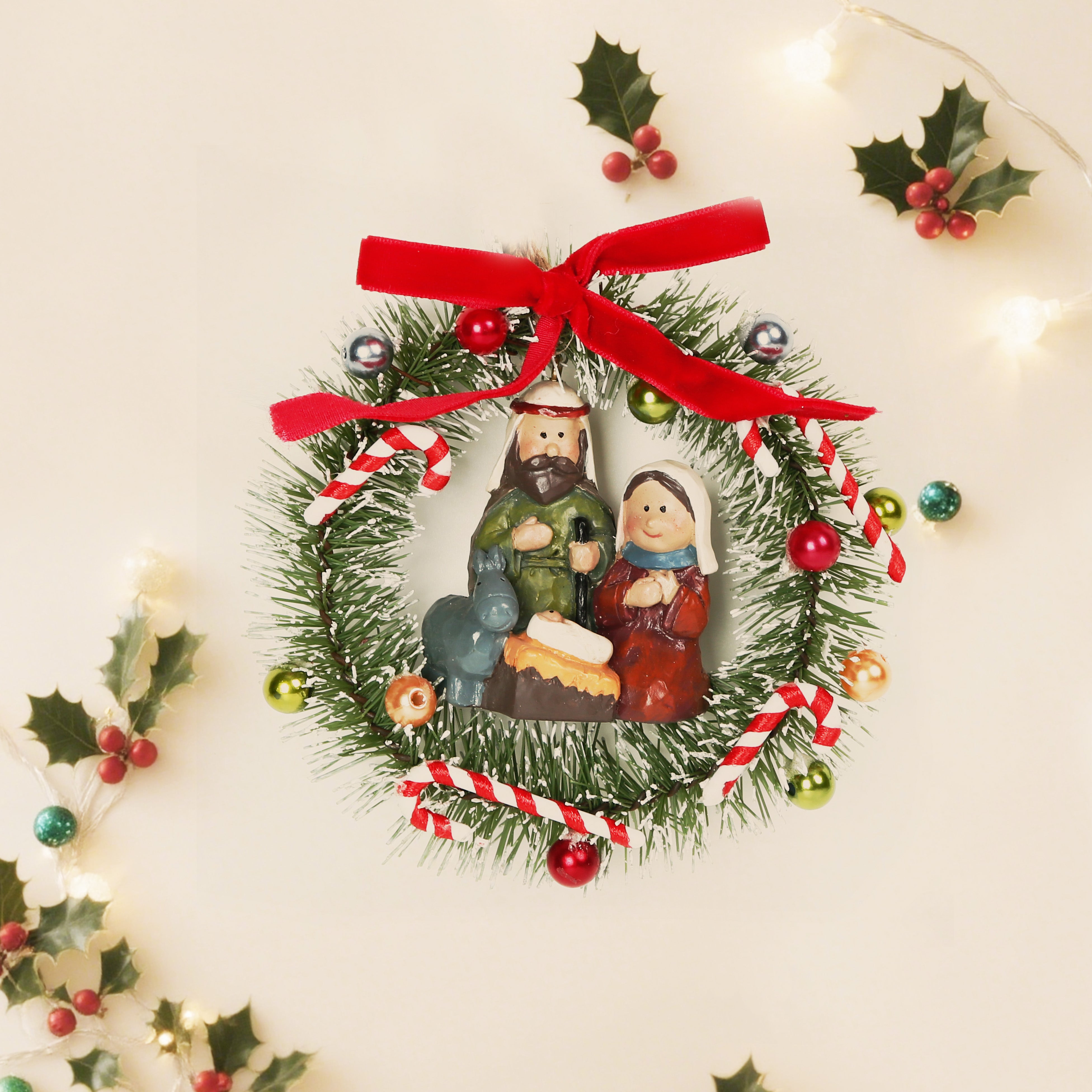 5 Inch MINI Holy Family Wreath Ornaments,MINI Nativity Christmas Holy Family, Christmas Resin Wreath Tree Ornaments, Kids Christmas Figurines Hanging Gifts