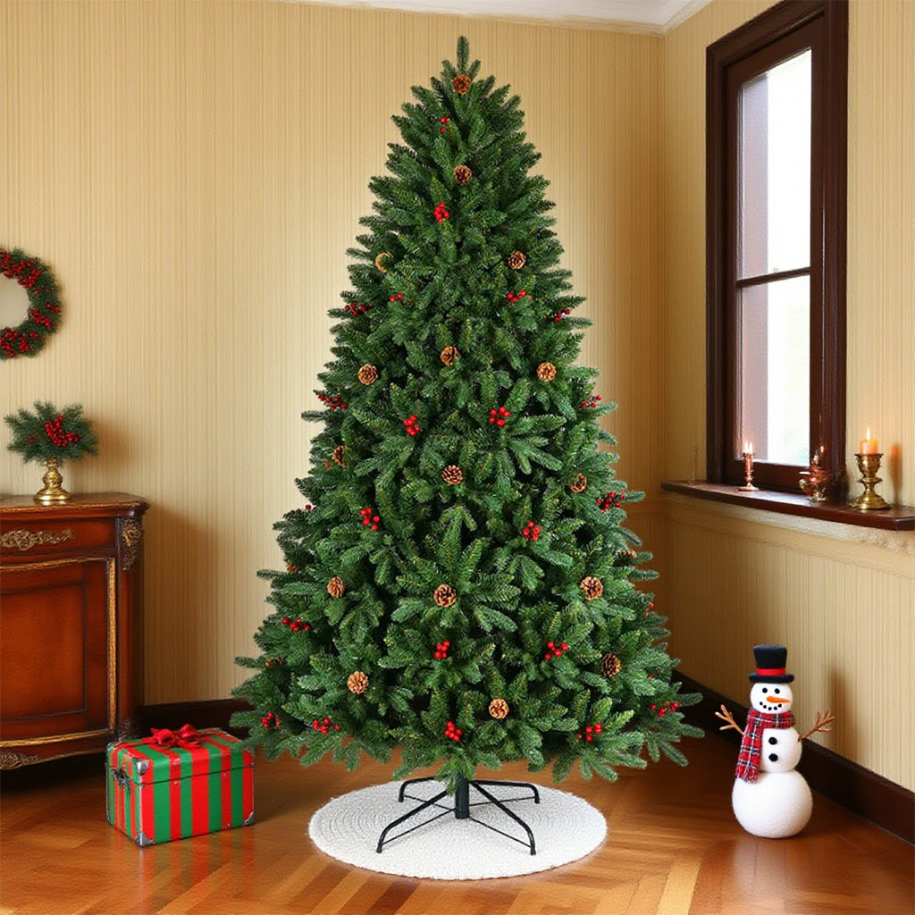 80 Inch Artificial Christmas Tree with Pine Cones Berries Green,Christmas Tree With Red Berry & Pine Cone, Premium Artificial Christmas Tree PE/PVC Branch Tips, Pre-Decorated Hinged Xmas Tree